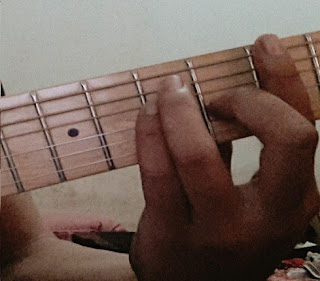 Perhatikan gambar pola kunci gantung diatas, dalam gambar diatas tidak terdapat senar dalam keadaan terbuka/open string. Kalaupun ada senar pada posisi yang terbuka, terdapat tanda X yang berarti senar tersebut tidak boleh dimainkan.